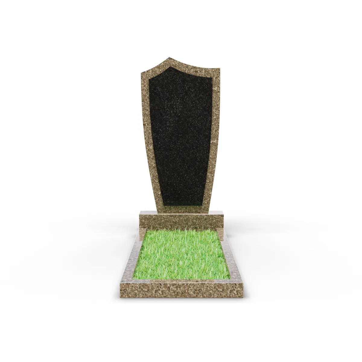 Комбинированный памятник «КукП4В Куртинский» – элегантное надгробие из бежевого камня с контрастной черной вставкой из Габбро. Форма памятника напоминает щит с заостренной верхней частью. Основание выполнено из светлого бежевого гранита, а зона захоронения может быть декорирована зеленым покрытием или гравием. Прочная тумба шириной 55 см придает конструкции устойчивость к погодным условиям и сохранение эстетики на долгие годы. Идеальное сочетание классики и современного дизайна.