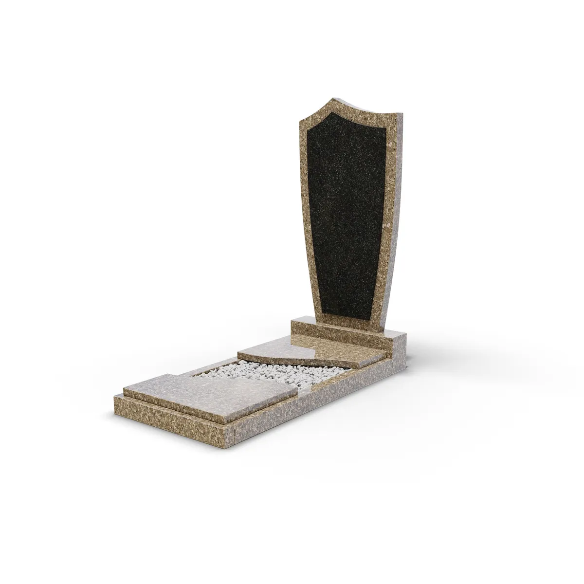 Комбинированный памятник «КукП4В Куртинский» – элегантное надгробие из бежевого камня с контрастной черной вставкой из Габбро. Форма памятника напоминает щит с заостренной верхней частью. Основание выполнено из светлого бежевого гранита, а зона захоронения накрыта двумя короткими плитами. Прочная тумба шириной 55 см придает конструкции устойчивость к погодным условиям и сохранение эстетики на долгие годы. Идеальное сочетание классики и современного дизайна.