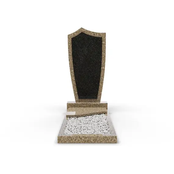 Комбинированный памятник «КукП4В Куртинский» – элегантное надгробие из светлого камня с контрастной черной вставкой из Габбро. Форма памятника напоминает щит с заостренной верхней частью. Основание выполнено из светлого бежевого гранита, а зона захоронения накрыта одной короткой плитой. Прочная тумба шириной 60 см придает конструкции устойчивость к погодным условиям и сохранение эстетики на долгие годы. Идеальное сочетание классики и современного дизайна.