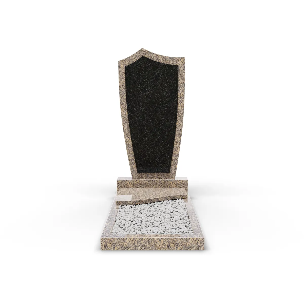 Комбинированный памятник «КукП4В Ладожский» – элегантное надгробие из серо-розового камня с контрастной черной вставкой из Габбро. Форма памятника напоминает щит с заостренной верхней частью. Основание выполнено из серо-розового гранита, а зона захоронения накрыта одной короткой плитой. Прочная тумба шириной 60 см придает конструкции устойчивость к погодным условиям и сохранение эстетики на долгие годы. Идеальное сочетание классики и современного дизайна.