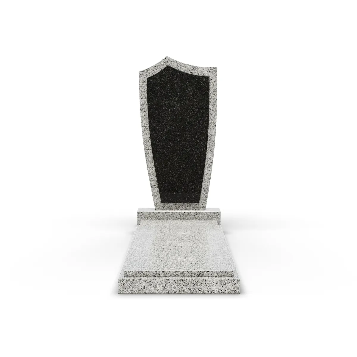 Комбинированный памятник «КукП4В Мансуровский» – элегантное надгробие из серого камня с контрастной черной вставкой из Габбро. Форма памятника напоминает щит с заостренной верхней частью. Основание выполнено из светлого гранита, а зона захоронения накрыта цельной плитой. Прочная тумба шириной 55 см придает конструкции устойчивость к погодным условиям и сохранение эстетики на долгие годы. Идеальное сочетание классики и современного дизайна.