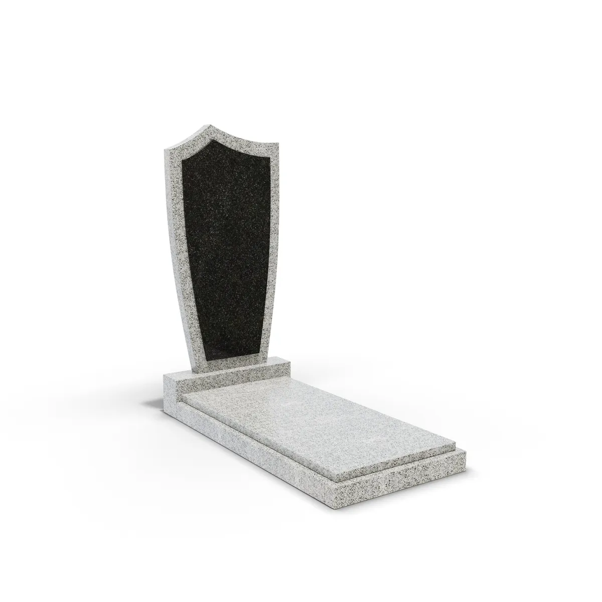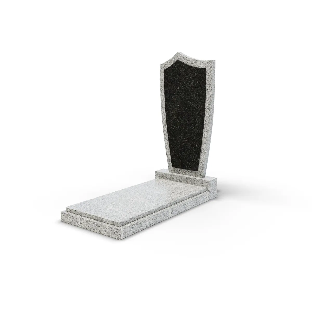 Комбинированный памятник «КукП4В Мансуровский» – элегантное надгробие из серого камня с контрастной черной вставкой из Габбро. Форма памятника напоминает щит с заостренной верхней частью. Основание выполнено из светлого гранита, а зона захоронения накрыта цельной плитой. Прочная тумба шириной 60 см придает конструкции устойчивость к погодным условиям и сохранение эстетики на долгие годы. Идеальное сочетание классики и современного дизайна.