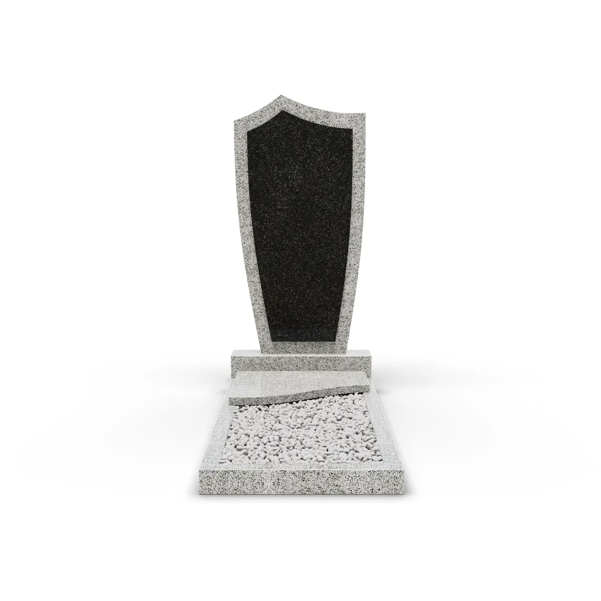 Комбинированный памятник «КукП4В Мансуровский» – элегантное надгробие из серого камня с контрастной черной вставкой из Габбро. Форма памятника напоминает щит с заостренной верхней частью. Основание выполнено из светлого гранита, а зона захоронения накрыта одной короткой плитой. Прочная тумба шириной 60 см придает конструкции устойчивость к погодным условиям и сохранение эстетики на долгие годы. Идеальное сочетание классики и современного дизайна.
