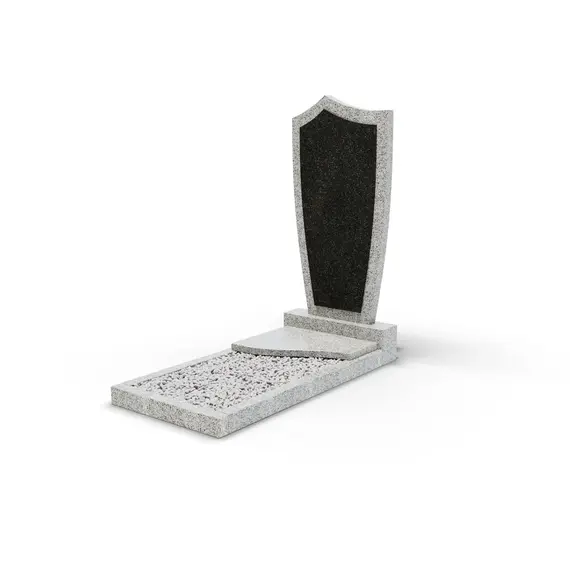 Комбинированный памятник «КукП4В Мансуровский» – элегантное надгробие из серого камня с контрастной черной вставкой из Габбро. Форма памятника напоминает щит с заостренной верхней частью. Основание выполнено из светлого гранита, а зона захоронения накрыта одной короткой плитой. Прочная тумба шириной 60 см придает конструкции устойчивость к погодным условиям и сохранение эстетики на долгие годы. Идеальное сочетание классики и современного дизайна.