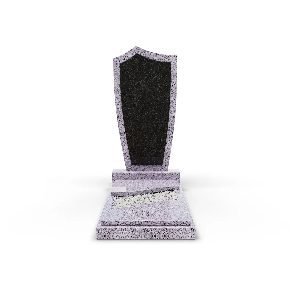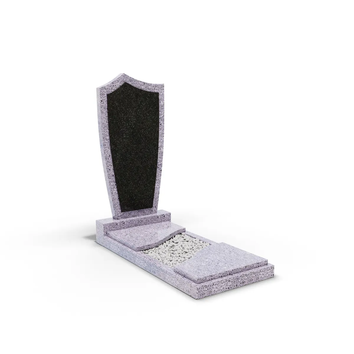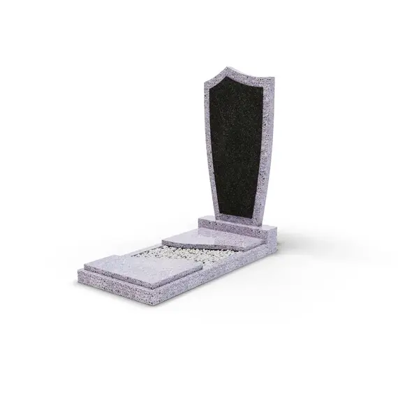 Комбинированный памятник «КукП4В Гранатовый амфиболит» – элегантное надгробие из серого камня с контрастной черной вставкой из Габбро. Форма памятника напоминает щит с заостренной верхней частью. Основание выполнено из светло-серого гранита, а зона захоронения накрыта двумя короткими плитами. Прочная тумба шириной 55 см придает конструкции устойчивость к погодным условиям и сохранение эстетики на долгие годы. Идеальное сочетание классики и современного дизайна.