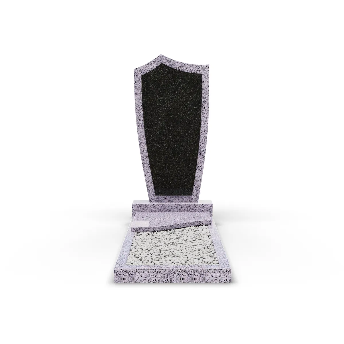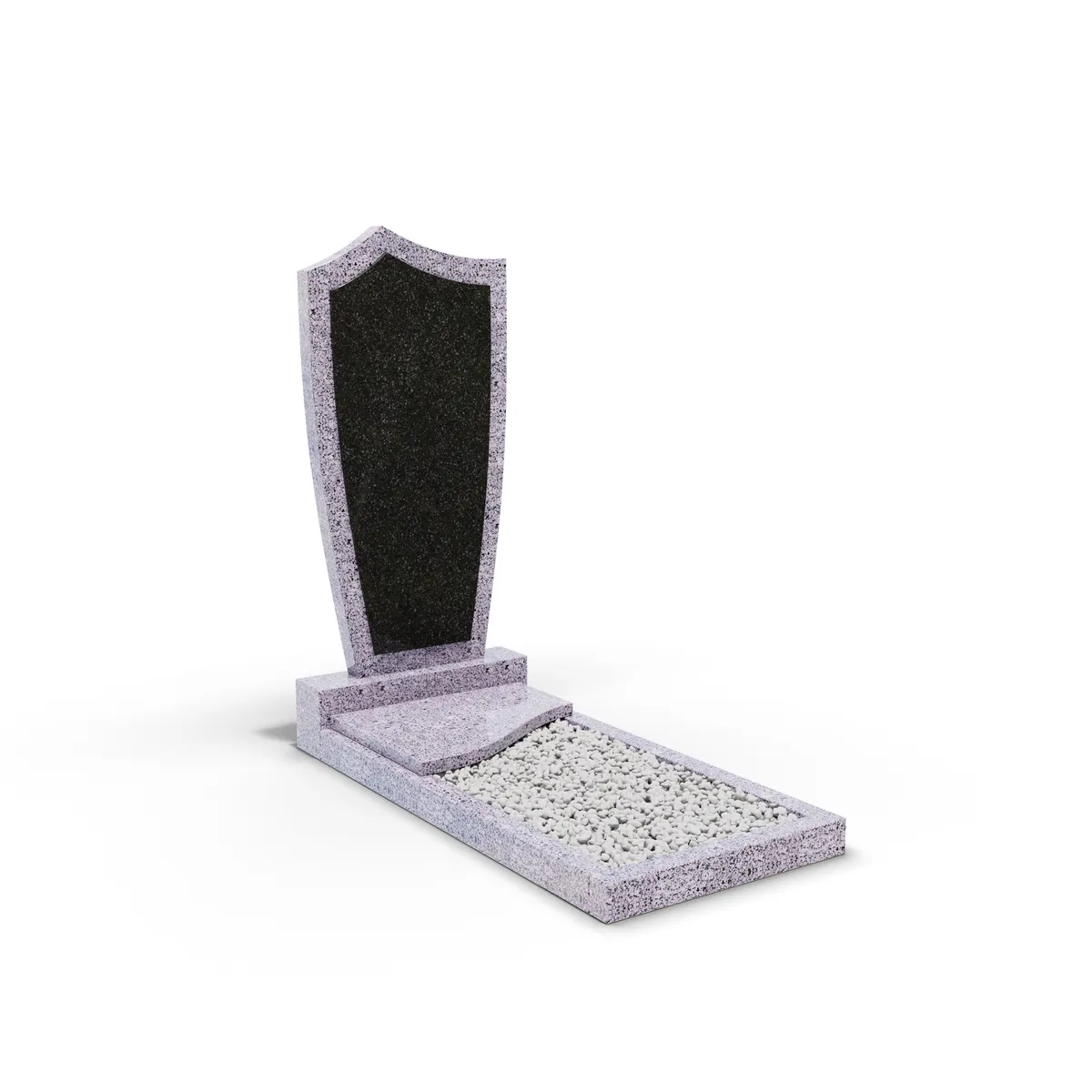 Комбинированный памятник «КукП4В Гранатовый амфиболит» – элегантное надгробие из серого камня с контрастной черной вставкой из Габбро. Форма памятника напоминает щит с заостренной верхней частью. Основание выполнено из светло-серого гранита, а зона захоронения накрыта одной короткой плитой. Прочная тумба шириной 55 см придает конструкции устойчивость к погодным условиям и сохранение эстетики на долгие годы. Идеальное сочетание классики и современного дизайна.
