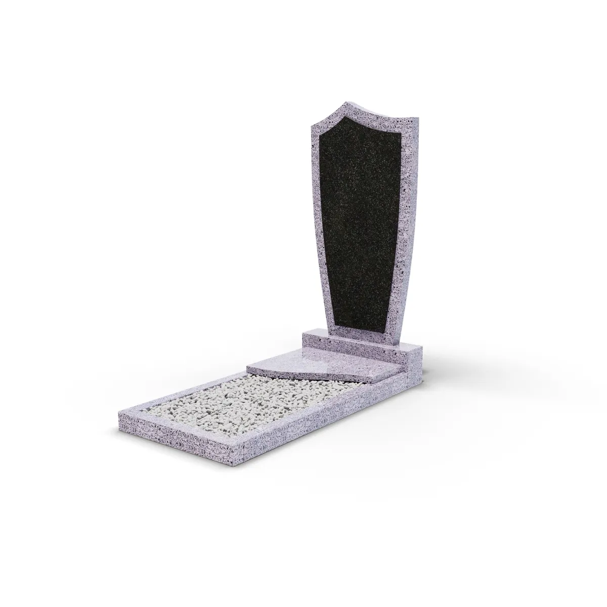 Комбинированный памятник «КукП4В Гранатовый амфиболит» – элегантное надгробие из серого камня с контрастной черной вставкой из Габбро. Форма памятника напоминает щит с заостренной верхней частью. Основание выполнено из светло-серого гранита, а зона захоронения накрыта одной короткой плитой. Прочная тумба шириной 60 см придает конструкции устойчивость к погодным условиям и сохранение эстетики на долгие годы. Идеальное сочетание классики и современного дизайна.