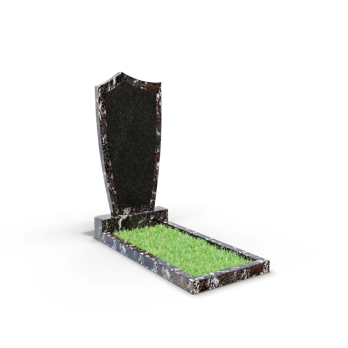 Комбинированный памятник «КукП4В Гранатовый амфиболит» – элегантное надгробие из камня с выразительными светлыми прожилками с контрастной черной вставкой из Габбро. Форма памятника напоминает щит с заостренной верхней частью. Основание выполнено из редкого гранита, а зона захоронения может быть декорирована зеленым покрытием или гравием. Прочная тумба шириной 70 см придает конструкции устойчивость к погодным условиям и сохранение эстетики на долгие годы. Идеальное сочетание классики и современного дизайна.