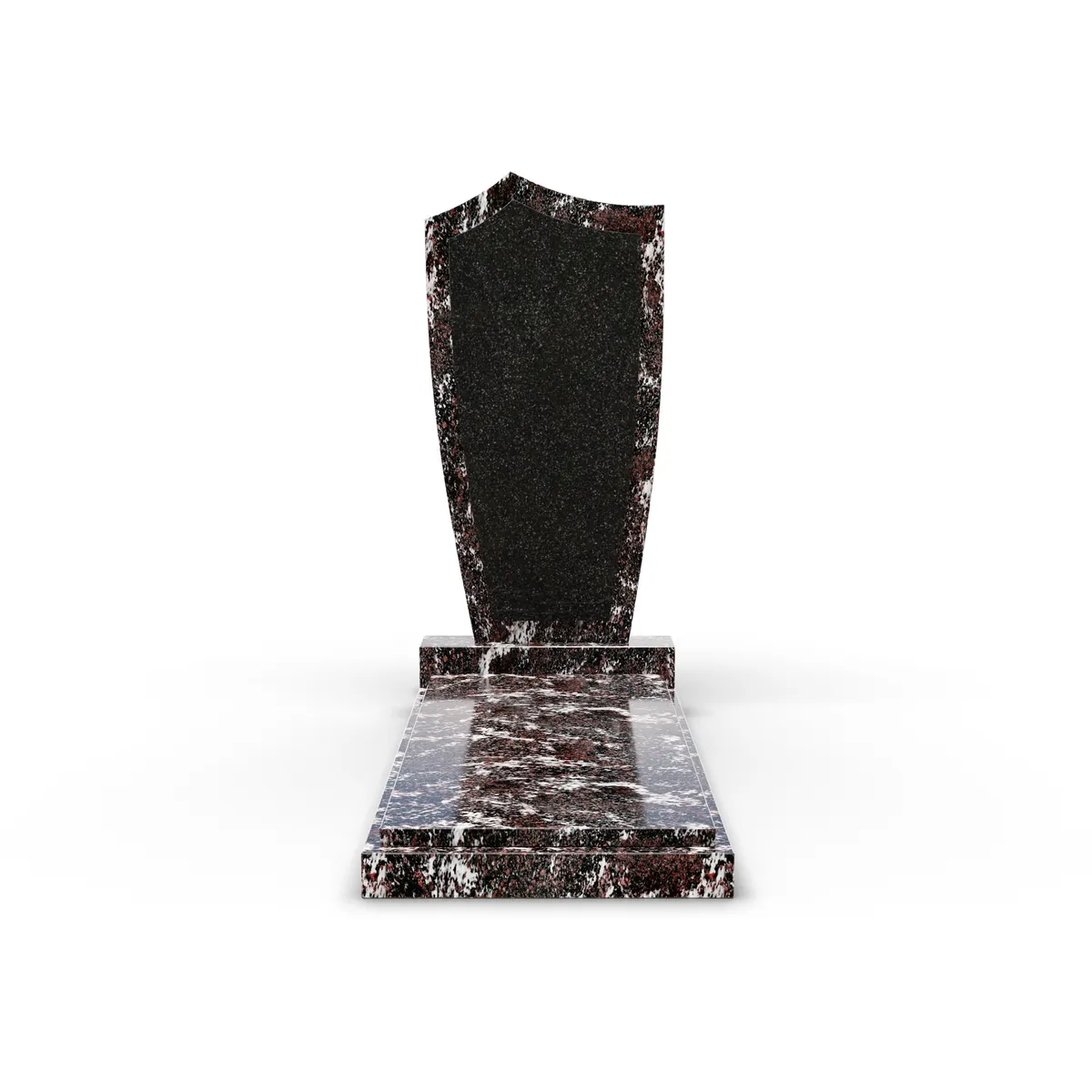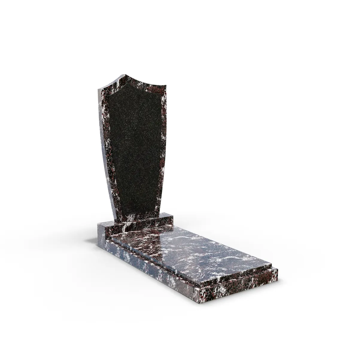 Комбинированный памятник «КукП4В Гранатовый амфиболит» – элегантное надгробие из камня с выразительными светлыми прожилками с контрастной черной вставкой из Габбро. Форма памятника напоминает щит с заостренной верхней частью. Основание выполнено из редкого гранита, а зона захоронения накрыта цельной плитой. Прочная тумба шириной 70 см придает конструкции устойчивость к погодным условиям и сохранение эстетики на долгие годы. Идеальное сочетание классики и современного дизайна.