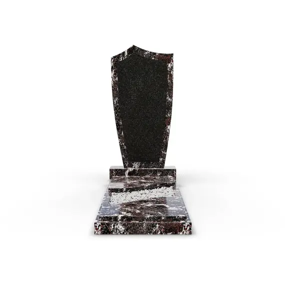 Комбинированный памятник «КукП4В Гранатовый амфиболит» – элегантное надгробие из камня с выразительными светлыми прожилками с контрастной черной вставкой из Габбро. Форма памятника напоминает щит с заостренной верхней частью. Основание выполнено из редкого гранита, а зона захоронения накрыта двумя короткими плитами. Прочная тумба шириной 70 см придает конструкции устойчивость к погодным условиям и сохранение эстетики на долгие годы. Идеальное сочетание классики и современного дизайна.