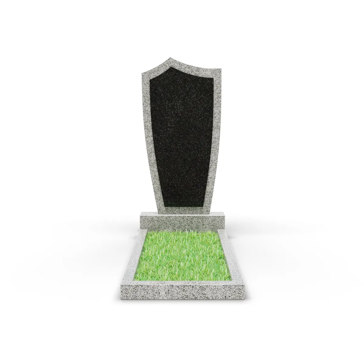 Комбинированный памятник «КукП4В Мансуровский» – элегантное надгробие из серого камня с контрастной черной вставкой из Габбро. Форма памятника напоминает щит с заостренной верхней частью. Основание выполнено из светлого гранита, а зона захоронения может быть декорирована зеленым покрытием или гравием. Прочная тумба шириной 70 см придает конструкции устойчивость к погодным условиям и сохранение эстетики на долгие годы. Идеальное сочетание классики и современного дизайна.