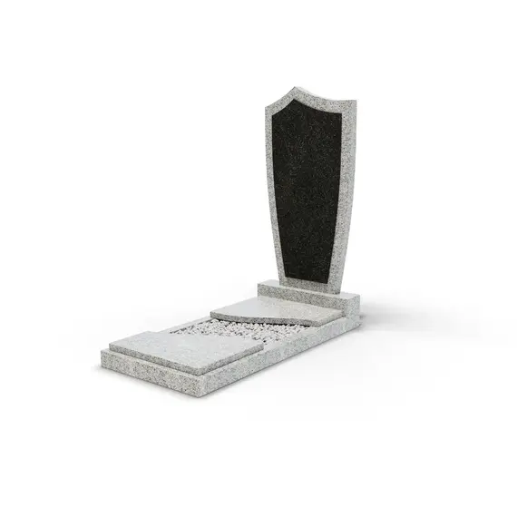 Комбинированный памятник «КукП4В Мансуровский» – элегантное надгробие из серого камня с контрастной черной вставкой из Габбро. Форма памятника напоминает щит с заостренной верхней частью. Основание выполнено из светлого гранита, а зона захоронения накрыта двумя короткими плитами. Прочная тумба шириной 70 см придает конструкции устойчивость к погодным условиям и сохранение эстетики на долгие годы. Идеальное сочетание классики и современного дизайна.