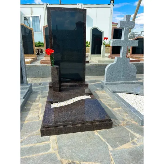 Комбинированный памятник «КукП57В Елизовский» с тумбой 60 см – это современное решение для увековечения памяти, выполненное в строгом и лаконичном стиле. Надгробный памятник изготовлен из высококачественного гранита с использованием черной гранитной вставной плиты из Габбро. Прямоугольная стела гармонично сочетается с цветником, оформленным из того же материала, который накрыт двумя короткими плитами. Стиль исполнения создает четкое представление о текстуре и форме памятника, придавая композиции спокойную и умиротворенную атмосферу. Этот памятник станет достойным выбором для тех, кто ценит традиции, качество и утонченную эстетику в оформлении мест захоронения.