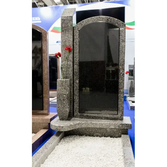 Комбинированный комплект «Возрождение КукД7В» – элегантный памятник из серого гранита с черной вставкой из Габбро. Изящные геометрические формы и прямые линии придают конструкции современный и утонченный вид. Комплект дополнен цветником под зелень или гравий и декоративной вазой. Строгий и лаконичный дизайн делает этот мемориальный комплект выразительным и долговечным. Толщина 8 см (9 см вместе со вставкой) позволяет памятнику быть устойчивым вариантом для благоустройства места памяти.