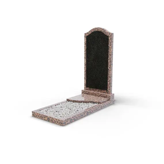 Комбинированный памятник «КукП11В Ю-Султаевский» - сочетает строгий минимализм с элегантностью классического дизайна. Изготовленный из высококачественного гранита, он украшен черной вставной плитой из Габбро. Верх стелы имеет изящную форму «плечи». Ширина тумбы - 70 см. Памятник выполнен в минималистичном стиле, где каждая деталь продумана до мелочей: четкие линии плит и прямоугольный постамент, накрытый одной короткой плитой, создают ощущение спокойствия и сдержанности. Материал подчеркивает форму памятника, делая его достойным выбором для увековечения памяти.
