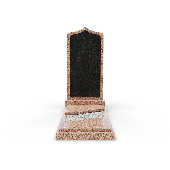 Комбинированный памятник «КукП38В Жельтау5» – это высококачественный надгробный памятник с тумбой 55 см, выполненный из высококачественного гранита с эффектной черной вставкой. Этот памятник сочетает классический стиль с современным минимализмом, благодаря чему становится достойным местом памяти. Надгробная плита из гранита демонстрирует естественную текстуру и прочность материала, а черная вставка подчеркивает четкие формы и придает изделию современный акцент. Изящная заостренная вершина в верхней части памятника и накрытый двумя короткими плитами цветник создают атмосферу спокойствия и гармонии, делая композицию утонченной и лаконичной. Этот памятник станет надежным выбором для увековечения памяти, символизируя уважение и тепло к ушедшим близким.