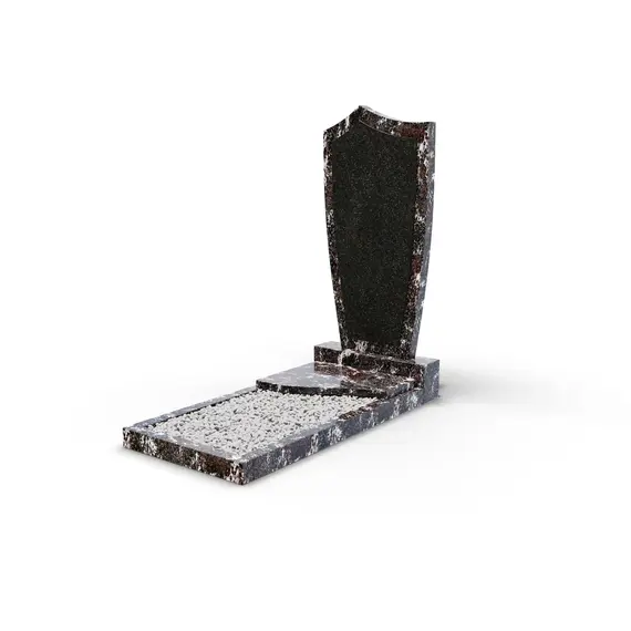 Комбинированный памятник «КукП4В Гранатовый амфиболит» – элегантное надгробие из камня с выразительными светлыми прожилками с контрастной черной вставкой из Габбро. Форма памятника напоминает щит с заостренной верхней частью. Основание выполнено из редкого гранита, а зона захоронения накрыта одной короткой плитой. Прочная тумба шириной 55 см придает конструкции устойчивость к погодным условиям и сохранение эстетики на долгие годы. Идеальное сочетание классики и современного дизайна.