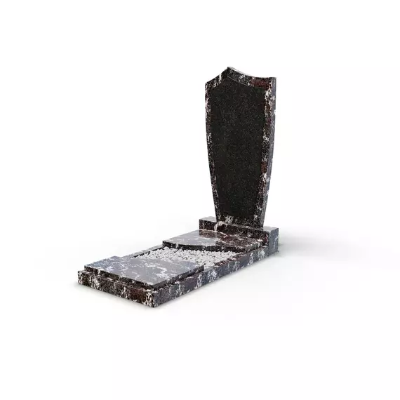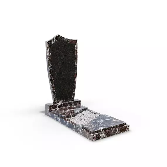 Комбинированный памятник «КукП4В Гранатовый амфиболит» – элегантное надгробие из камня с выразительными светлыми прожилками с контрастной черной вставкой из Габбро. Форма памятника напоминает щит с заостренной верхней частью. Основание выполнено из редкого гранита, а зона захоронения накрыта двумя короткими плитами. Прочная тумба шириной 70 см придает конструкции устойчивость к погодным условиям и сохранение эстетики на долгие годы. Идеальное сочетание классики и современного дизайна.