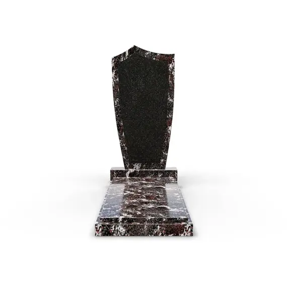 Комбинированный памятник «КукП4В Гранатовый амфиболит» – элегантное надгробие из камня с выразительными светлыми прожилками с контрастной черной вставкой из Габбро. Форма памятника напоминает щит с заостренной верхней частью. Основание выполнено из редкого гранита, а зона захоронения накрыта цельной плитой. Прочная тумба шириной 70 см придает конструкции устойчивость к погодным условиям и сохранение эстетики на долгие годы. Идеальное сочетание классики и современного дизайна.