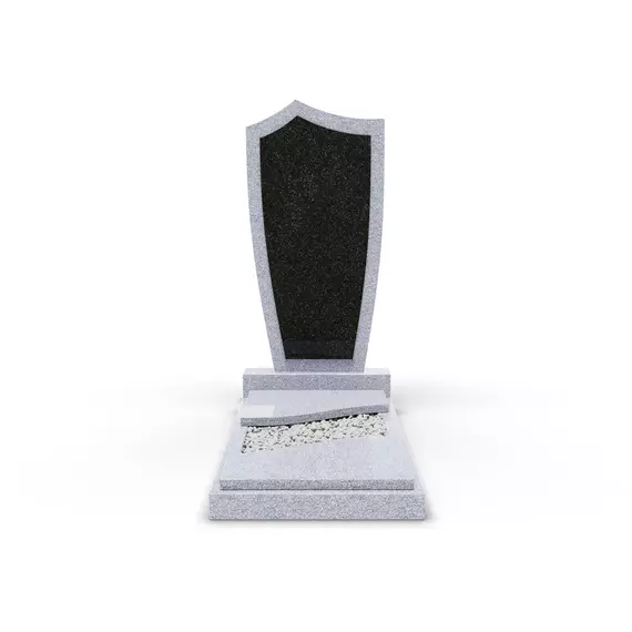 Комбинированный памятник «КукП4В Исетский» – элегантное надгробие из светлого серого камня с контрастной черной вставкой из Габбро. Форма памятника напоминает щит с заостренной верхней частью. Основание выполнено из светлого гранита, а зона захоронения накрыта двумя короткими плитами. Прочная тумба шириной 55 см придает конструкции устойчивость к погодным условиям и сохранение эстетики на долгие годы. Идеальное сочетание классики и современного дизайна.