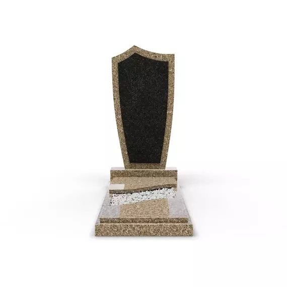 Комбинированный памятник «КукП4В Куртинский» – элегантное надгробие из бежевого камня с контрастной черной вставкой из Габбро. Форма памятника напоминает щит с заостренной верхней частью. Основание выполнено из светлого бежевого гранита, а зона захоронения накрыта двумя короткими плитами. Прочная тумба шириной 55 см придает конструкции устойчивость к погодным условиям и сохранение эстетики на долгие годы. Идеальное сочетание классики и современного дизайна.
