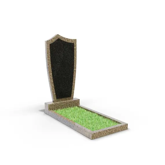 Комбинированный памятник «КукП4В Куртинский» – элегантное надгробие из бежевого камня с контрастной черной вставкой из Габбро. Форма памятника напоминает щит с заостренной верхней частью. Основание выполнено из светлого бежевого гранита, а зона захоронения может быть декорирована зеленым покрытием или гравием. Прочная тумба шириной 55 см придает конструкции устойчивость к погодным условиям и сохранение эстетики на долгие годы. Идеальное сочетание классики и современного дизайна.