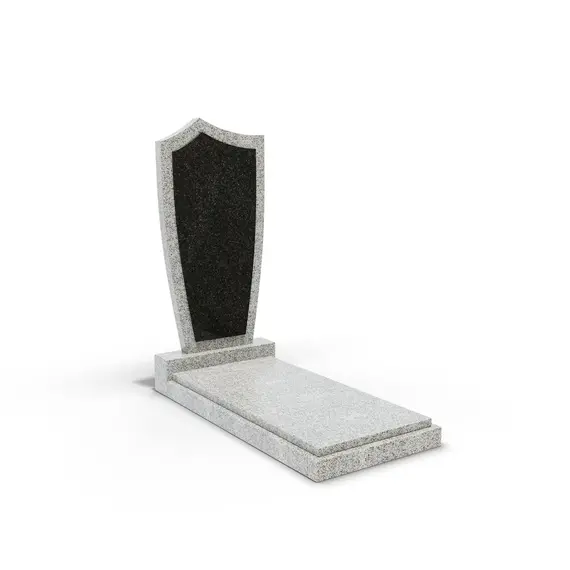 Комбинированный памятник «КукП4В Мансуровский» – элегантное надгробие из серого камня с контрастной черной вставкой из Габбро. Форма памятника напоминает щит с заостренной верхней частью. Основание выполнено из светлого гранита, а зона захоронения накрыта цельной плитой. Прочная тумба шириной 55 см придает конструкции устойчивость к погодным условиям и сохранение эстетики на долгие годы. Идеальное сочетание классики и современного дизайна.