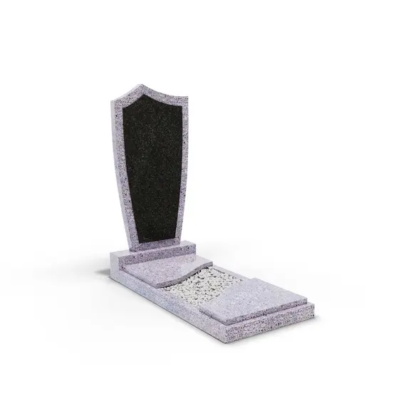 Комбинированный памятник «КукП4В Гранатовый амфиболит» – элегантное надгробие из серого камня с контрастной черной вставкой из Габбро. Форма памятника напоминает щит с заостренной верхней частью. Основание выполнено из светло-серого гранита, а зона захоронения накрыта двумя короткими плитами. Прочная тумба шириной 60 см придает конструкции устойчивость к погодным условиям и сохранение эстетики на долгие годы. Идеальное сочетание классики и современного дизайна.