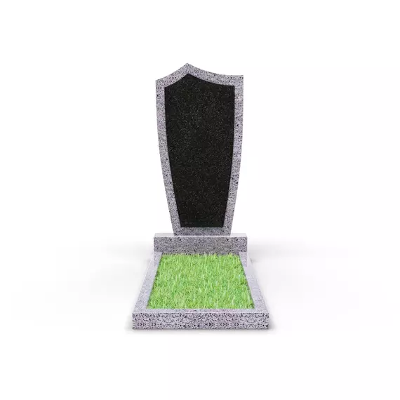 Комбинированный памятник «КукП4В Гранатовый амфиболит» – элегантное надгробие из серого камня с контрастной черной вставкой из Габбро. Форма памятника напоминает щит с заостренной верхней частью. Основание выполнено из светло-серого гранита, а зона захоронения может быть декорирована зеленым покрытием или гравием. Прочная тумба шириной 60 см придает конструкции устойчивость к погодным условиям и сохранение эстетики на долгие годы. Идеальное сочетание классики и современного дизайна.