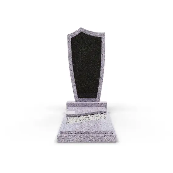 Комбинированный памятник «КукП4В Гранатовый амфиболит» – элегантное надгробие из серого камня с контрастной черной вставкой из Габбро. Форма памятника напоминает щит с заостренной верхней частью. Основание выполнено из светло-серого гранита, а зона захоронения накрыта двумя короткими плитами. Прочная тумба шириной 70 см придает конструкции устойчивость к погодным условиям и сохранение эстетики на долгие годы. Идеальное сочетание классики и современного дизайна.