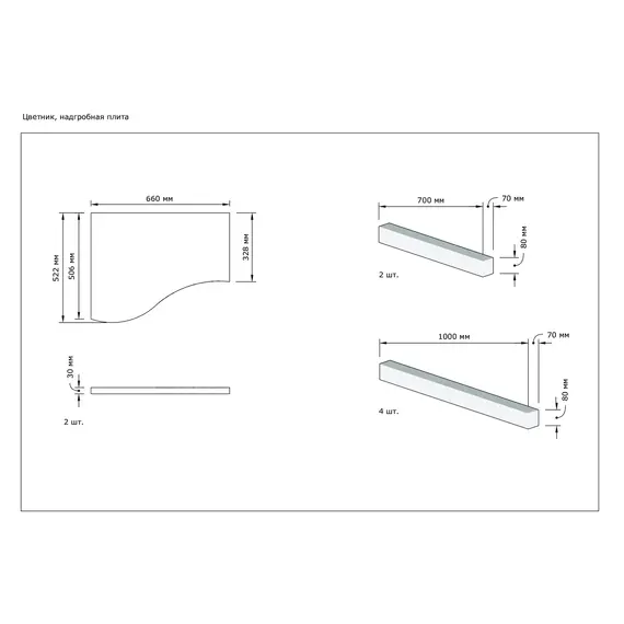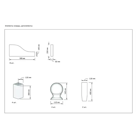 *стоимость включает в себя только стоимость элементов (без установки, отверстия в комплектации не представлены)