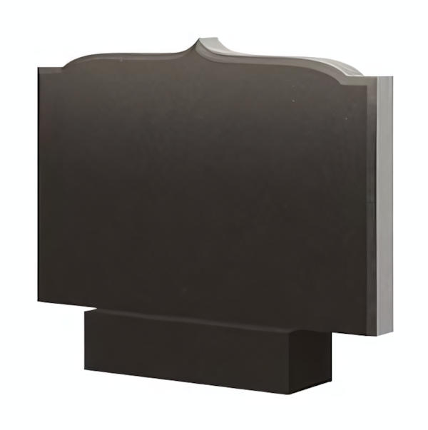 В основе памятника заложена прямоугольная форма, которая украшена интересной и довольно необычной верхушкой. Она представляет из себя две плавные черты, которые объединяются в остром угле и тем самым создают силуэт купола. Боковые стороны выполнены в виде прямых и лаконичных линий, напоминая величественные стены монументального храма. Такое воплощение ритуального искусства послужит отличным акцентом на месте захоронения ваших почивших родственников и поможет олицетворить их лучшие черты характера, а также показать насколько они дороги были всем окружающим их людям.