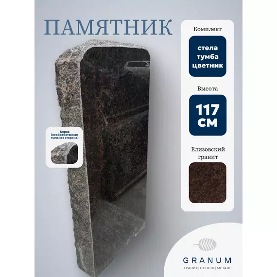 Памятник корка Елизовский гранит с необработанной тыльной стороной морозоустойчив, долговечен с минимальной влагопоглощаемостью.