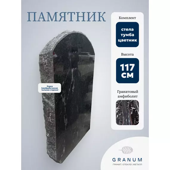 Памятник корка Гранатовый Амфиболит с необработанной тыльной стороной отличается изысканностью и неповторимой красотой