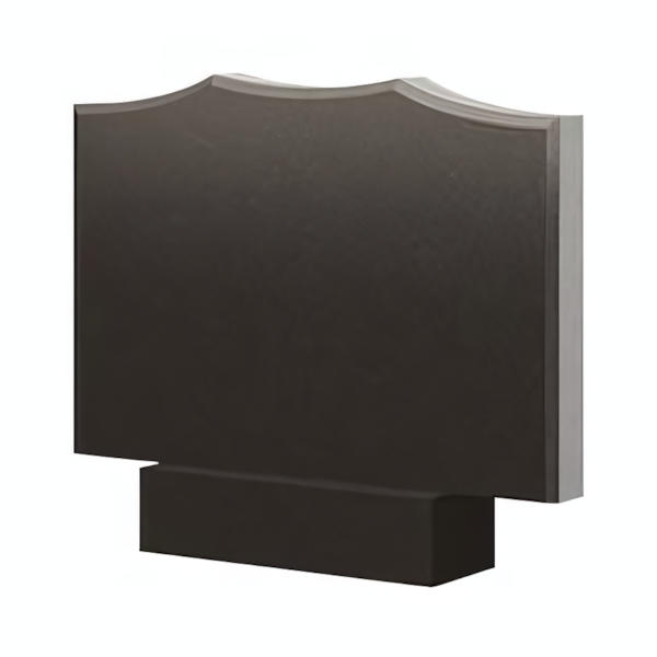 Основной формой данной модели является прямоугольная фигура, о чем свидетельствуют прямые и лаконичные боковые стороны. Но для того чтобы придать памятнику более привлекательный и восхитительный образ его верхушка выполнена довольно интересным способом. Это несколько плавных линий, которые соединяясь межу собой выглядят словно морская рябь. Благодаря такому весьма необычному оформлению мемориальная конструкция приобретает более легкий и элегантный внешний вид, что поможет достойно оформить захоронение ваших самых дорогих и горячо любимых умерших родственников.
