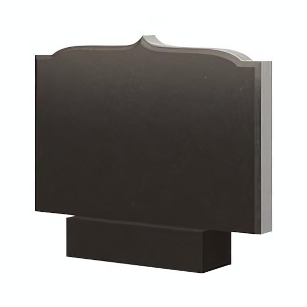 В основе памятника заложена прямоугольная форма, которая украшена интересной и довольно необычной верхушкой. Она представляет из себя две плавные черты, которые объединяются в остром угле и тем самым создают силуэт купола. Боковые стороны выполнены в виде прямых и лаконичных линий, напоминая величественные стены монументального храма. Такое воплощение ритуального искусства послужит отличным акцентом на месте захоронения ваших почивших родственников и поможет олицетворить их лучшие черты характера, а также показать насколько они дороги были всем окружающим их людям.