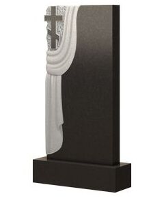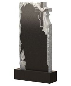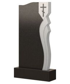 Данная модель представлена в довольно интересном, необычном и контрастном образе. Основное пространство стелы выполнено в черном цвете, которое отлично сочетается с фигурной белоснежной правой стороной. Волнообразная верхушка надгробия увенчана изображением шестиконечного креста, указывающего на...