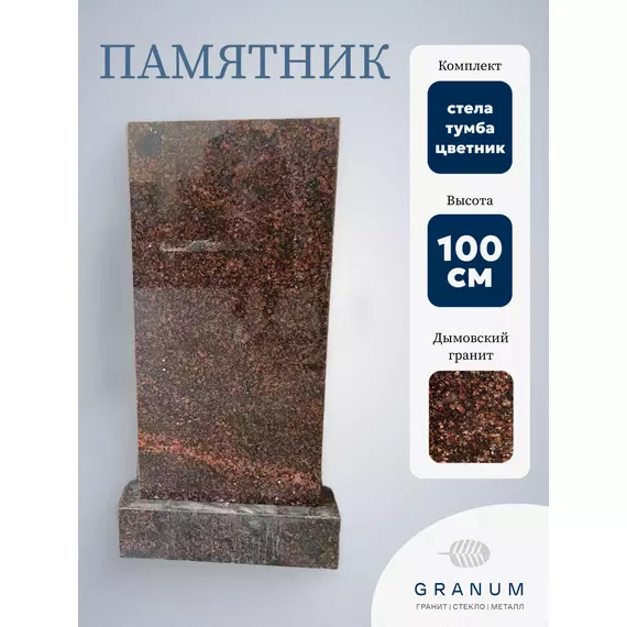Прямоугольный памятник, коричневый, Дымовский гранит, отличается красивым коричнево-бордовым цветом со светлыми прожилками, мелкозернистой структурой и высокими эксплуатационными характеристиками.