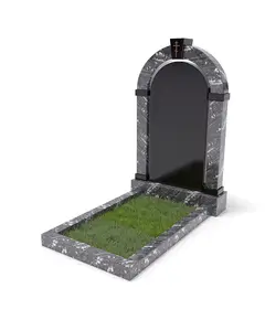 Изысканный мемориальный комплекс из редкого гранатового амфиболита с выразительными светлыми прожилками, гармонично сочетающегося с глубоким черным Габбро.