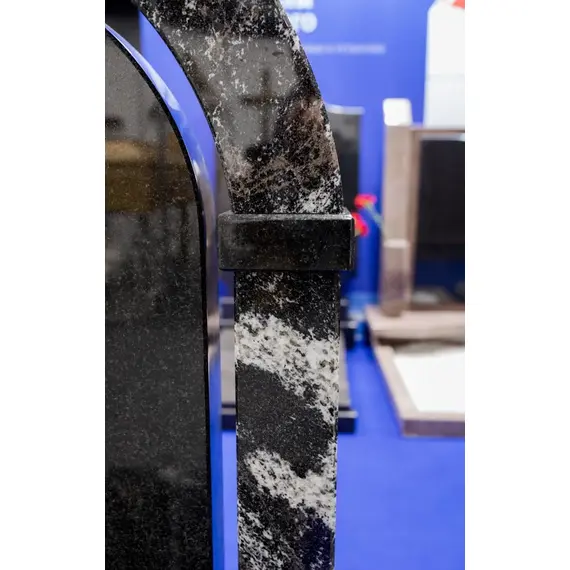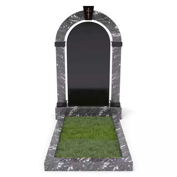 Комплект «АРКАДИЯ» (Гранатовый амфиболит/Габбро) с цветником – элегантный мемориальный комплект из редкого гранатового амфиболита с выразительными светлыми прожилками, гармонично сочетающегося с глубоким черным габбро. Главный элемент – монументальная арка, дополненная черной гладкой плитой из Габбро. В нижней части памятника расположен цветник с декоративным углублением для зелени или гравия. Классический стиль, высококачественная обработка гранита и гармоничная цветовая гамма делают этот памятник символом памяти и уважения.