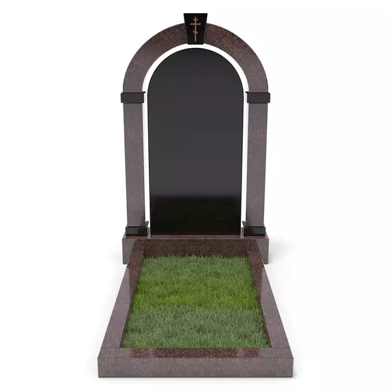 Комплект «АРКАДИЯ» (Елизовский/Габбро) с цветником – элегантный мемориальный комплекс из благородного Елизовского гранита теплых коричнево-красных оттенков в сочетании с черным Габбро. Монументальная арка, дополненная черной гладкой плитой из Габбро. В нижней части памятника расположен цветник с декоративным углублением для зелени или гравия. Классический стиль, высококачественная обработка гранита и гармоничная цветовая гамма делают этот памятник символом памяти и уважения.