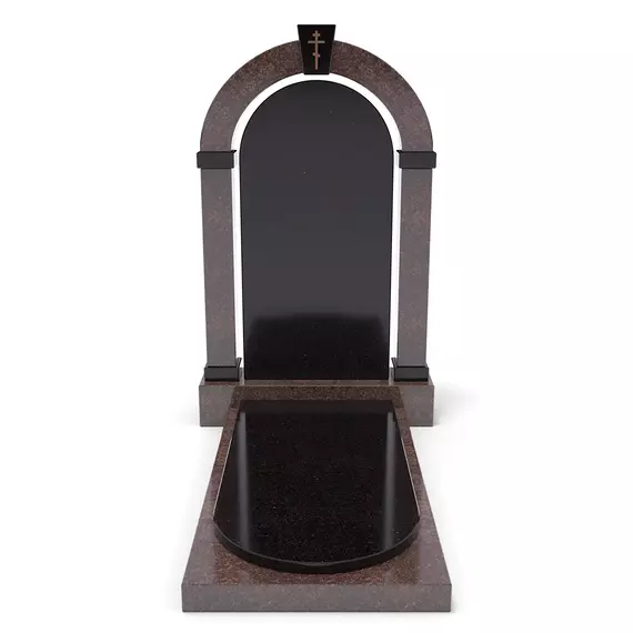 Комплект «АРКАДИЯ» (Елизовский/Габбро) с плитой – элегантный мемориальный комплект из благородного Елизовского гранита теплых коричнево-красных оттенков и черного Габбро. Гладкая черная гранитная пластина, обрамленная массивной каменной основой. Классический дизайн, строгие формы и высокое качество обработки делают этот памятник достойным выбором для создания места памяти.