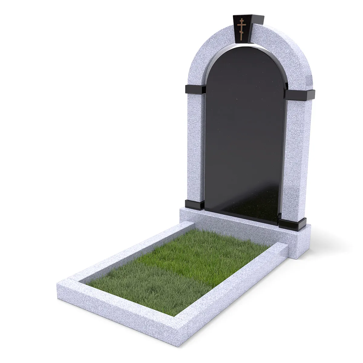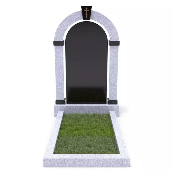 Комплект «АРКАДИЯ» (Исетский/Габбро) с цветником – элегантный мемориальный комплект из светлого Исетского гранита в сочетании с черным Габбро. Главный элемент – монументальная арка, дополненная черной гладкой плитой из Габбро. В нижней части памятника расположен цветник с декоративным углублением для зелени или гравия. Классический стиль, высококачественная обработка гранита и гармоничная цветовая гамма делают этот памятник символом памяти и уважения.