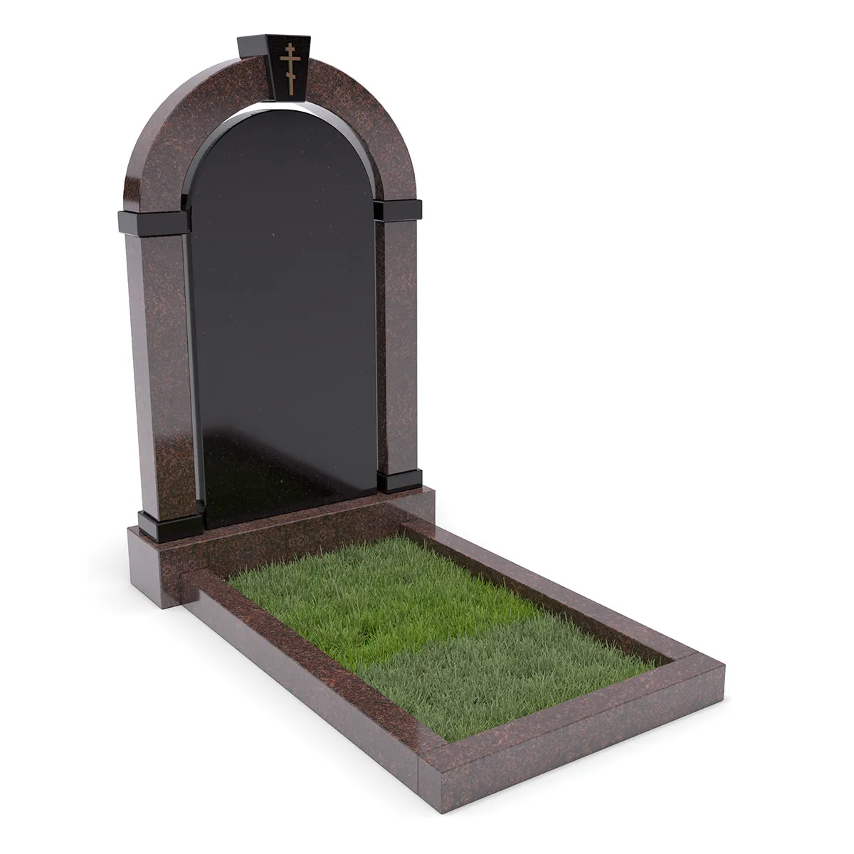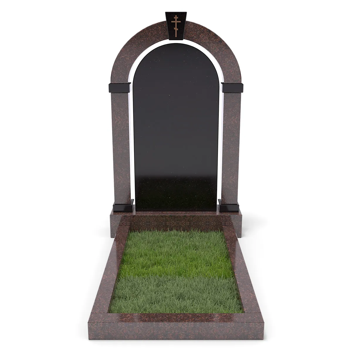 Комплект «АРКАДИЯ» (Елизовский/Габбро) с цветником – элегантный мемориальный комплекс из благородного Елизовского гранита теплых коричнево-красных оттенков в сочетании с черным Габбро. Монументальная арка, дополненная черной гладкой плитой из Габбро. В нижней части памятника расположен цветник с декоративным углублением для зелени или гравия. Классический стиль, высококачественная обработка гранита и гармоничная цветовая гамма делают этот памятник символом памяти и уважения.