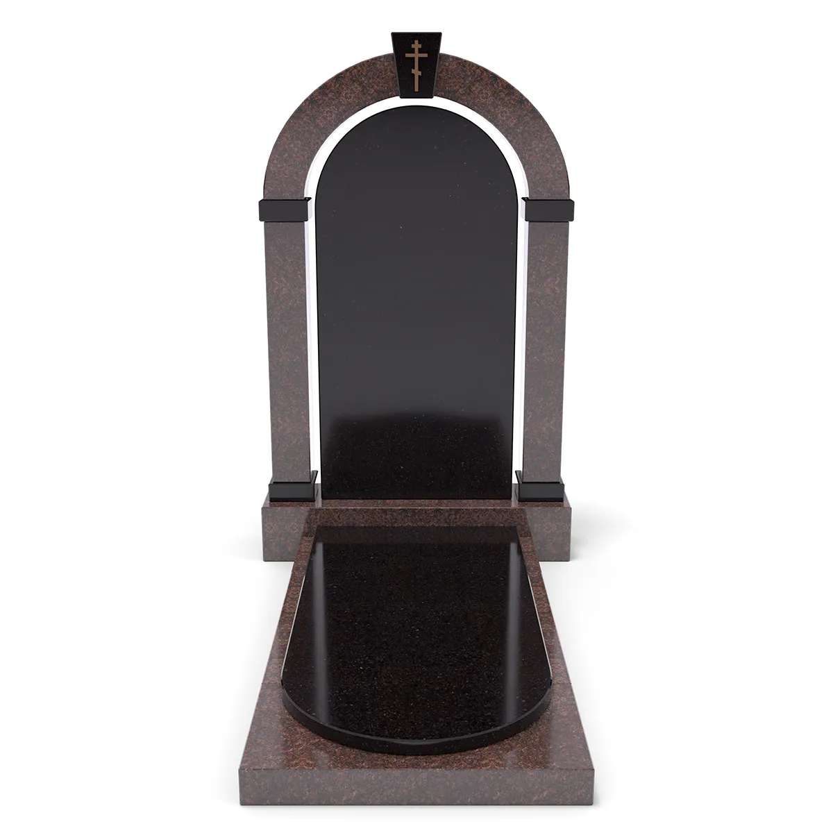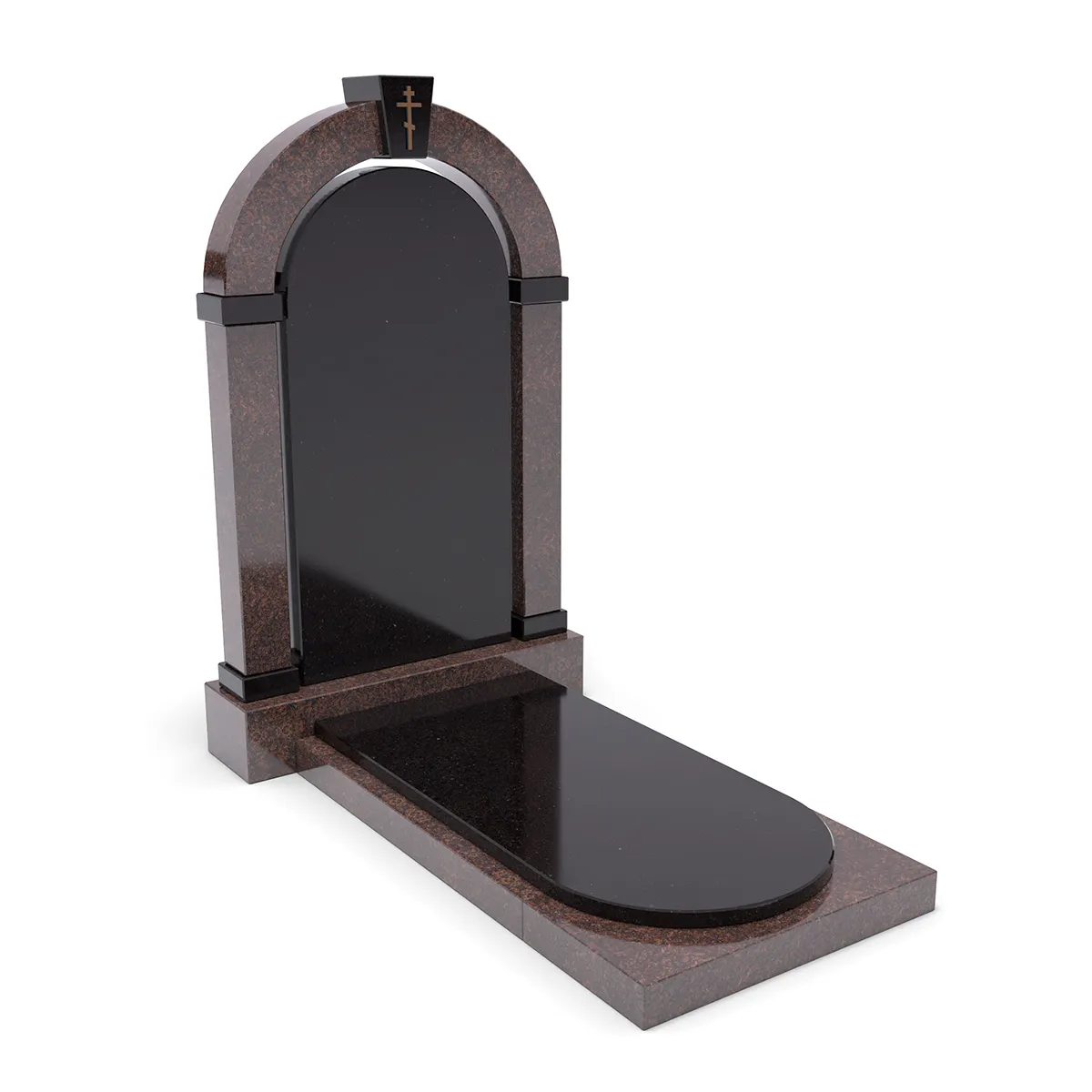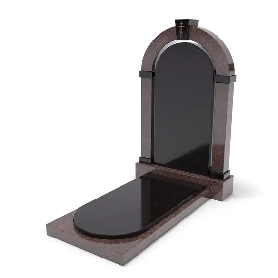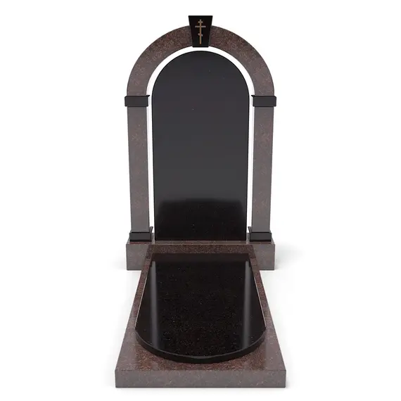Комплект «АРКАДИЯ» (Елизовский/Габбро) с плитой – элегантный мемориальный комплект из благородного Елизовского гранита теплых коричнево-красных оттенков и черного Габбро. Гладкая черная гранитная пластина, обрамленная массивной каменной основой. Классический дизайн, строгие формы и высокое качество обработки делают этот памятник достойным выбором для создания места памяти.