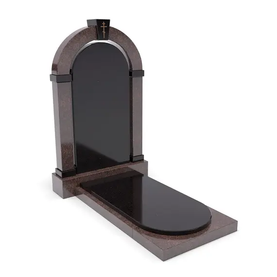 Комплект «АРКАДИЯ» (Елизовский/Габбро) с плитой – элегантный мемориальный комплект из благородного Елизовского гранита теплых коричнево-красных оттенков и черного Габбро. Гладкая черная гранитная пластина, обрамленная массивной каменной основой. Классический дизайн, строгие формы и высокое качество обработки делают этот памятник достойным выбором для создания места памяти.
