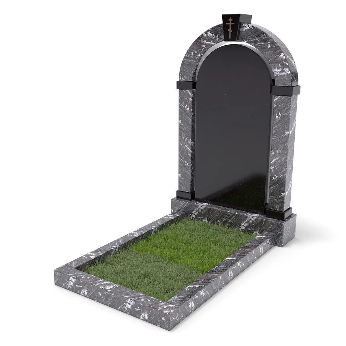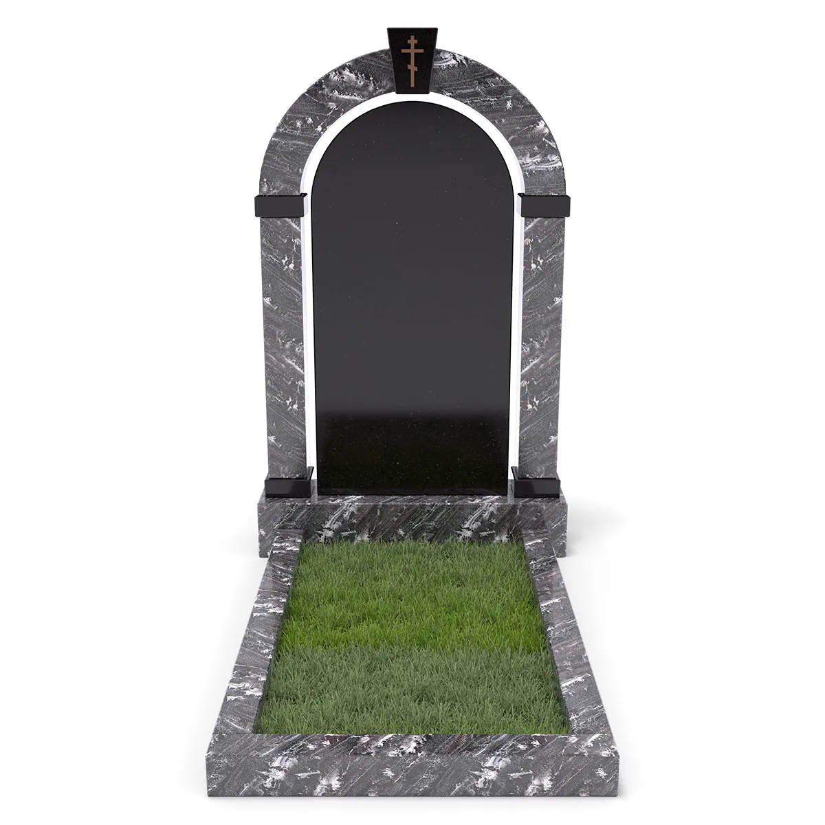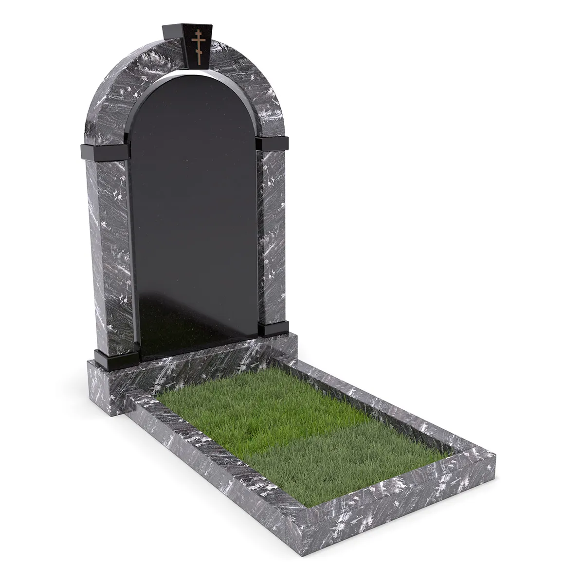 Комплект «АРКАДИЯ» (Гранатовый амфиболит/Габбро) с цветником – элегантный мемориальный комплект из редкого гранатового амфиболита с выразительными светлыми прожилками, гармонично сочетающегося с глубоким черным габбро. Главный элемент – монументальная арка, дополненная черной гладкой плитой из Габбро. В нижней части памятника расположен цветник с декоративным углублением для зелени или гравия. Классический стиль, высококачественная обработка гранита и гармоничная цветовая гамма делают этот памятник символом памяти и уважения.