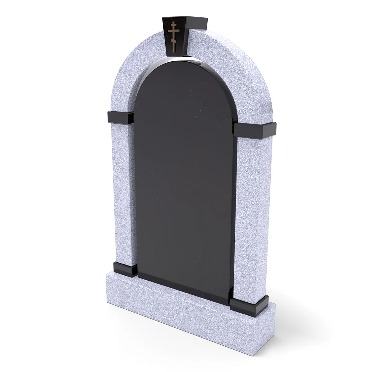 Комплект «АРКАДИЯ» (Исетский/Габбро) без цветника – строгий и элегантный мемориальный комплект, выполненный из светлого Исетского гранита с центральной черной вставкой из Габбро. Главный элемент – арочная стела с крестообразным украшением в верхней части, придающая памятнику величественный облик. Симметричный дизайн и минималистичный стиль делают этот памятник достойным выбором для создания места памяти. Высококачественная обработка гранита обеспечивает долговечность и эстетичность.