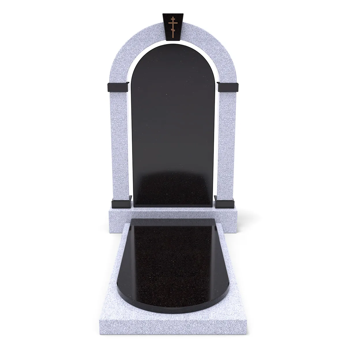 Комплект «АРКАДИЯ» (Исетский/Габбро) с плитой – элегантный мемориальный комплект из сочетания светлого Исетского гранита и черного Габбро. Гладкая черная гранитная пластина, обрамленная массивной серой каменной основой. Классический дизайн, строгие формы и высокое качество обработки делают этот памятник достойным выбором для создания места памяти.