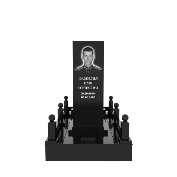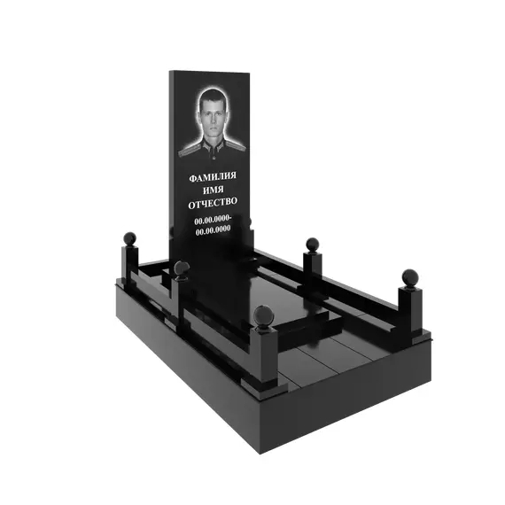 Гранитный подиум 150 × 240 см, высота 30 см, гравировка полурост, столбики и шары